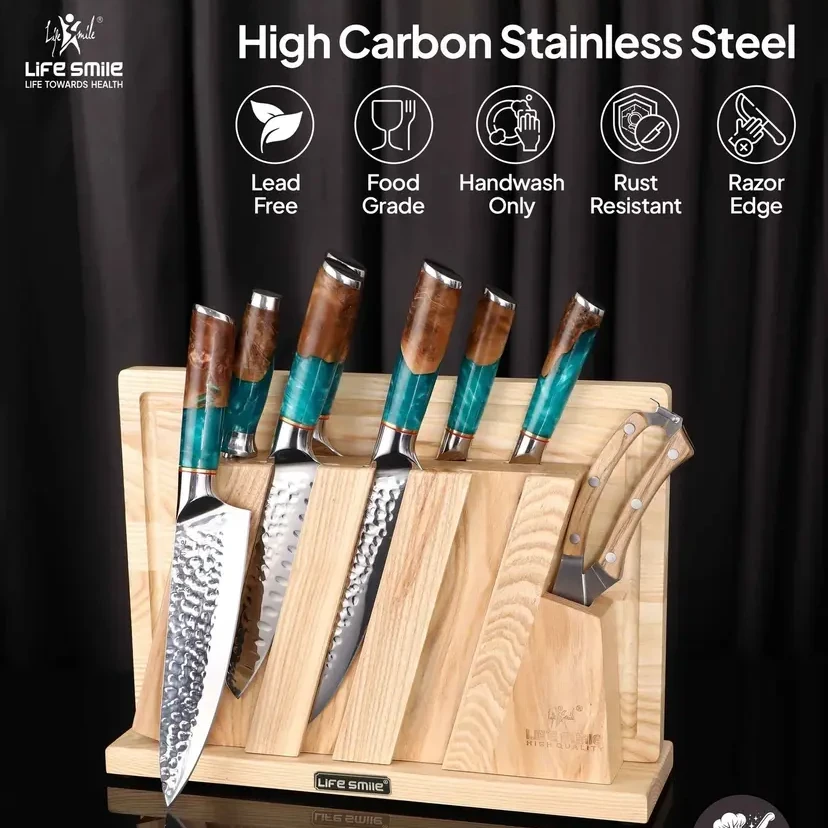 شامل :ساطور، چاقوی سرآشپز، چاقوی سانتوکو، چاقوی برش، چاقوی پوست کندن، چاقوی عمومی، قیچی، ابزار تیز کننده، پایه نگهدارنده، تخته خردکن